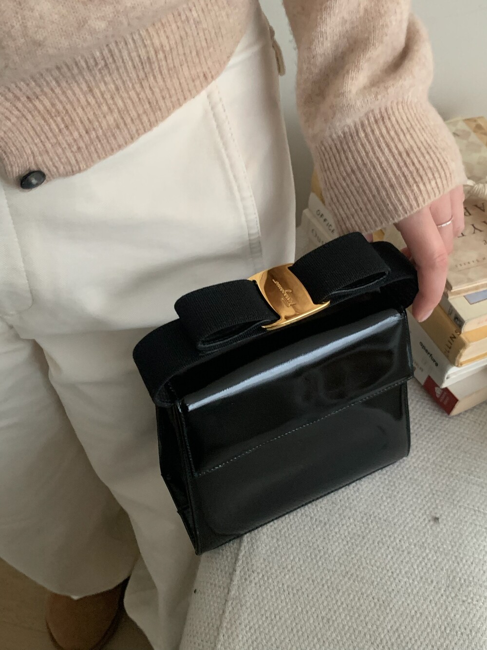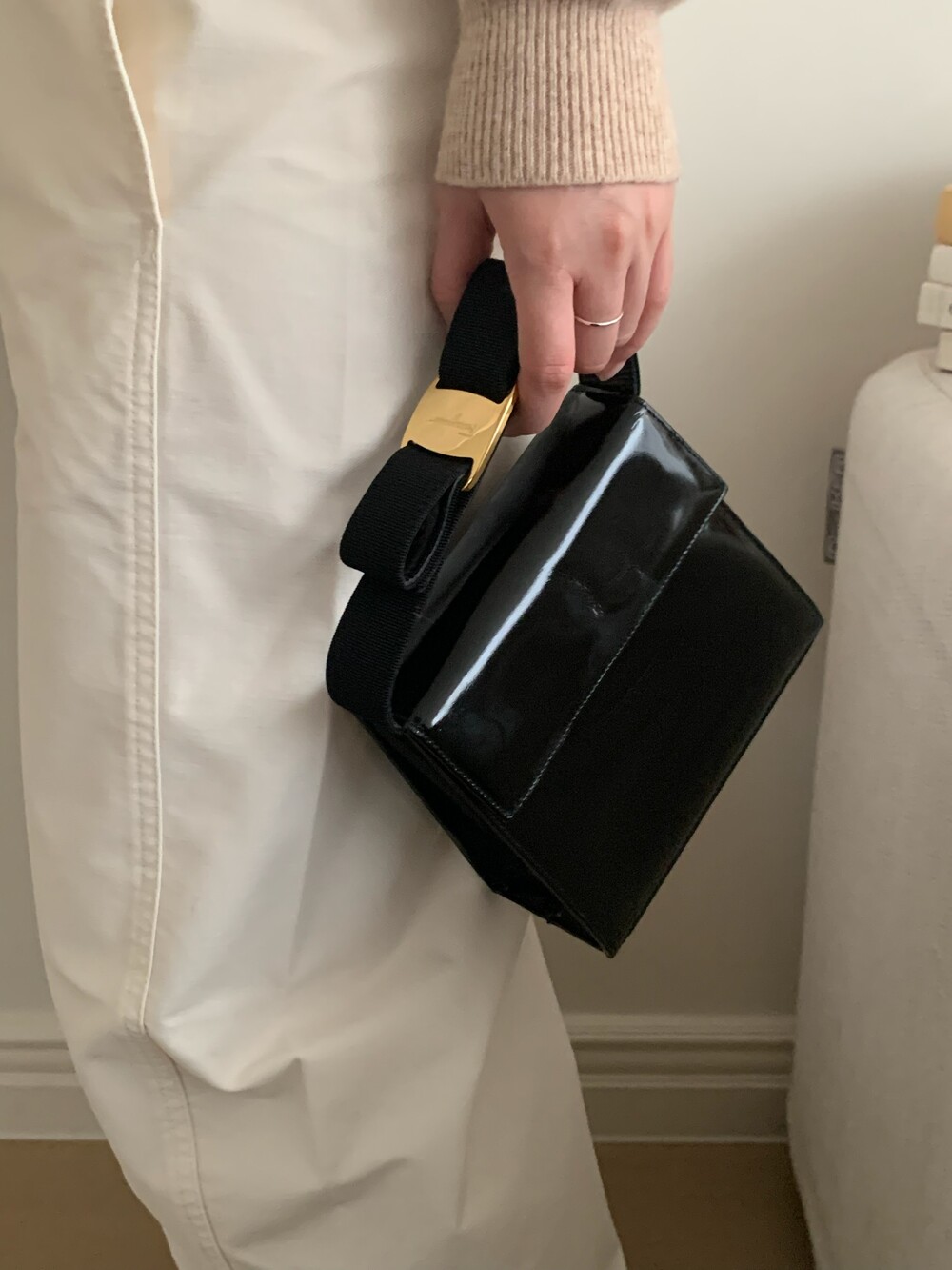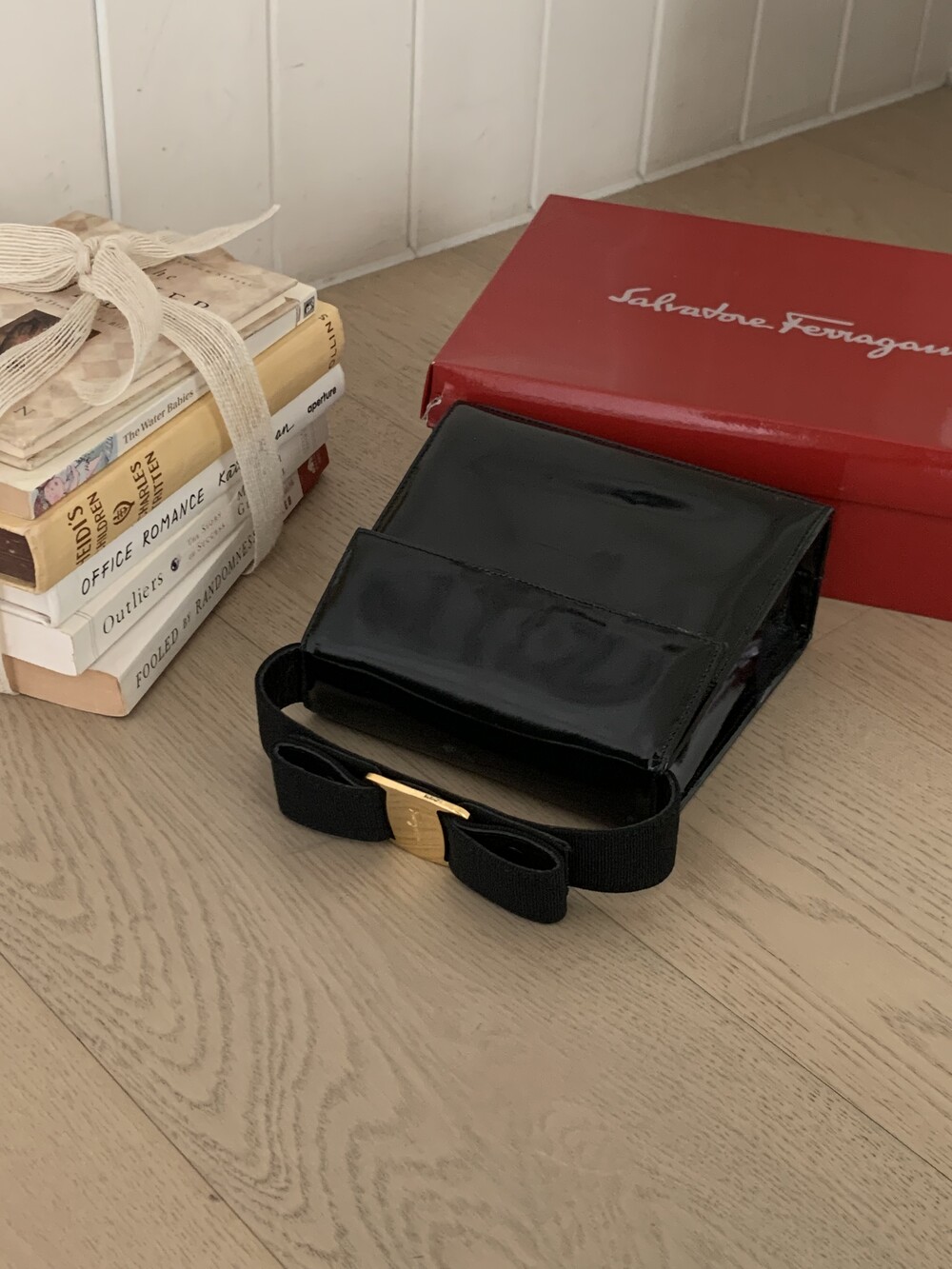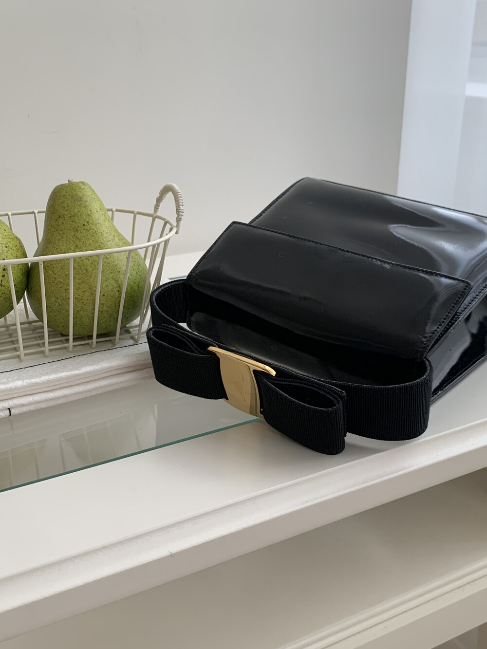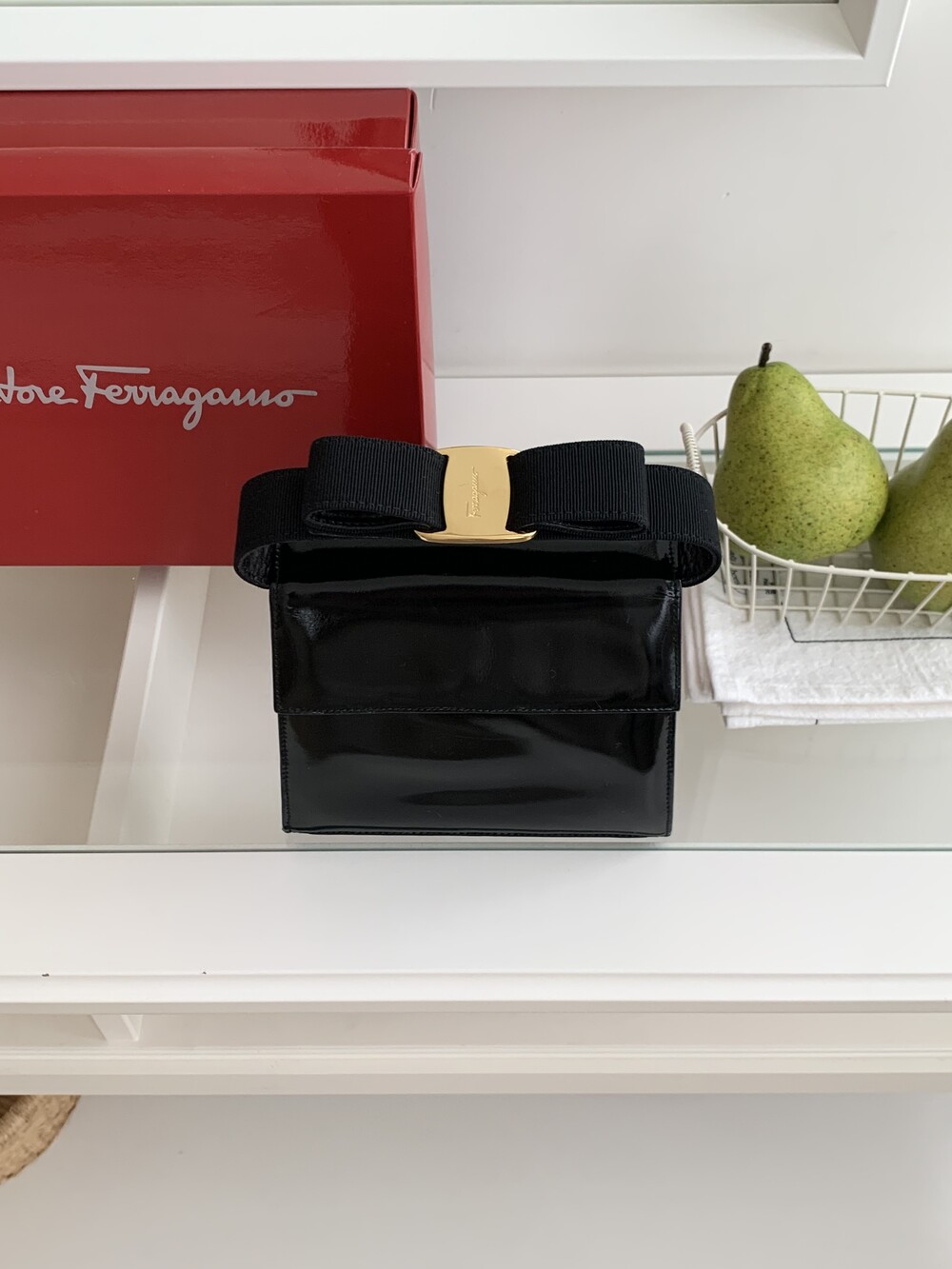 Ferragamo bow enamel 2way bag